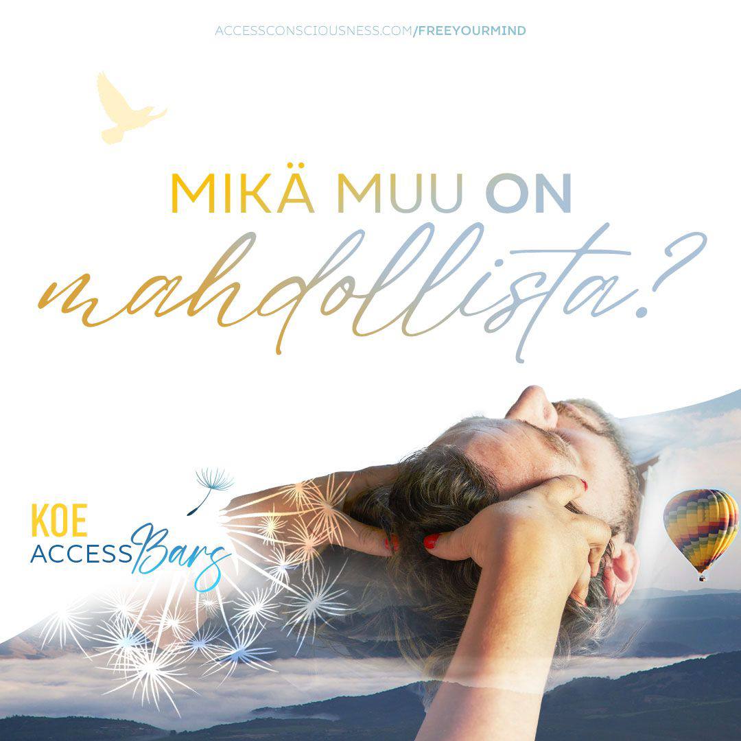 Tutustuin Accessiin Satu Lindgrenin videoiden kautta. Access Consciousnessiin liittyy kysymyksiä ja suullisia työkaluja, jotka alkoivat pian resonoida ja luoda uusia oivalluksia ja vahvoja hoksautuksia. Esimerkiksi, kuinka paljon olin vältellyt muutosta koska olin tuominnut muutoksen pahaksi. "Jos asiat muuttuvat niin ne muuttuvat pahemmaksi". Mitä jos muutos voi sittenkin tuoda jotain parempaa?